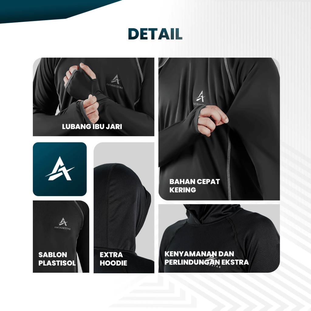 ANTARESTAR Official - Baselayer Hoodie Katel Antarestar Baselayer Pria Wanita Baju Slimfit Baju Manset Olahraga Quality