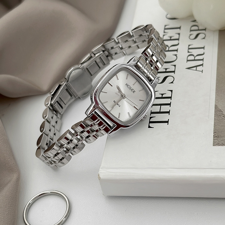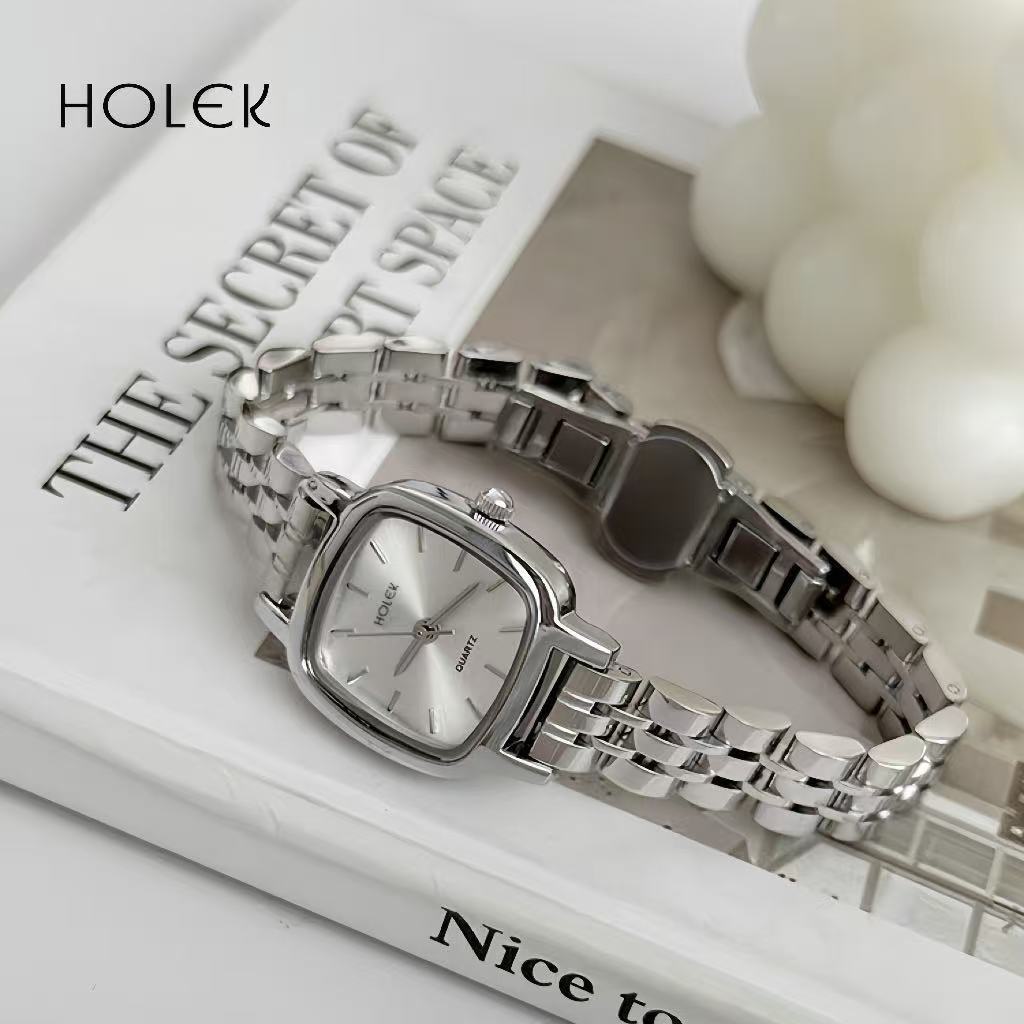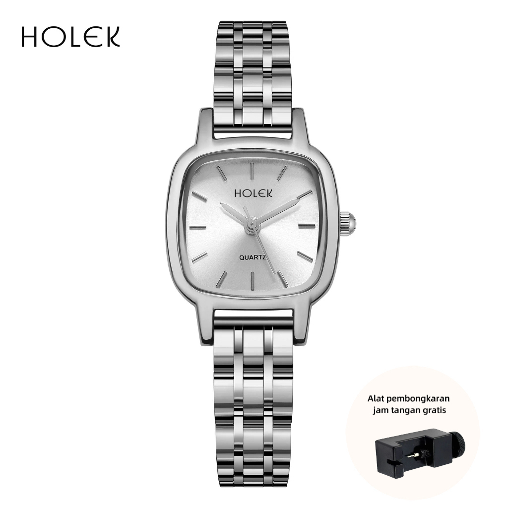 HOLEK 20125 Jam Tangan Wanita Original Baru Kecil Elegan Mewah Kasual Persegi Tali Stainless Steel Jam Tangan Wanita Tah