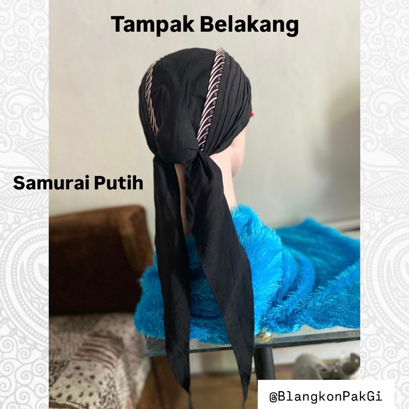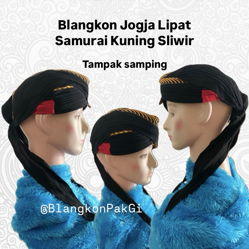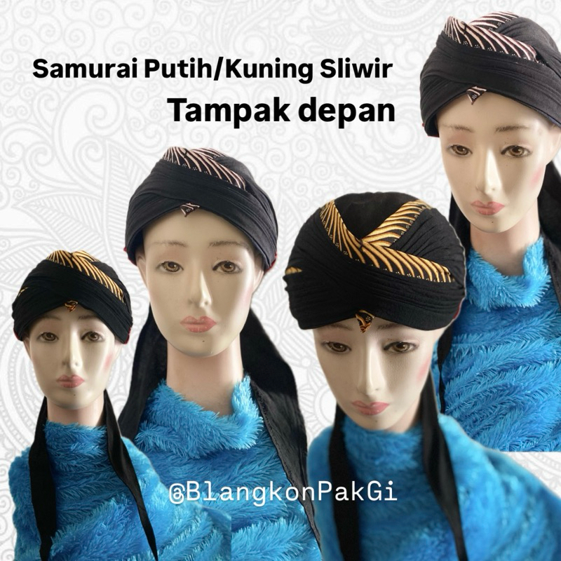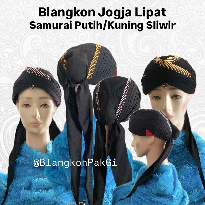 Blangkon Jogja Lipat Samurai Kuning/Putih Sliwir Full Hitam