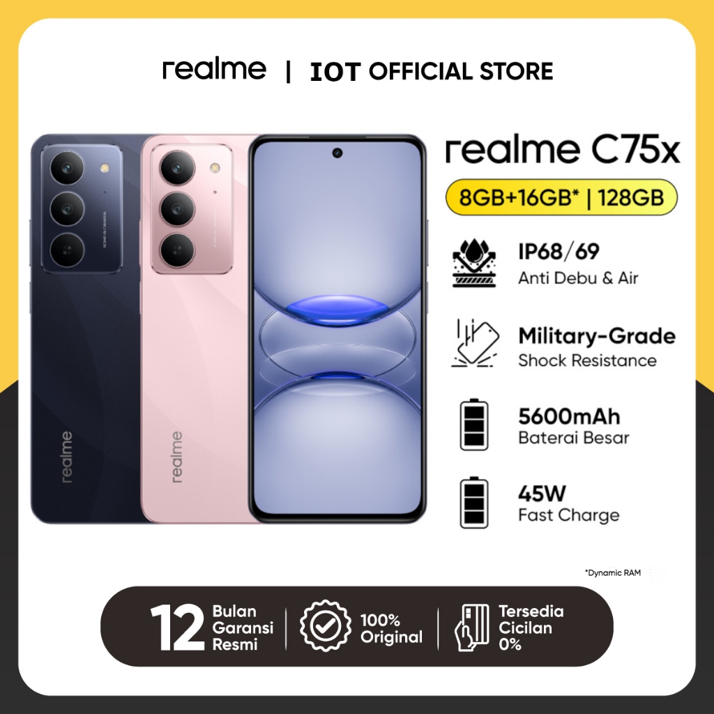 [Cuma Hari Ini Gratis Holder HP] realme C75x 8GB+16GB|128GB Air | Military Grade shock resistance | Baterai 5600mAh 45W Fast Charge (Pilihan Resmi,Harga Historis RendahAman Digunakan, 2025Laris)