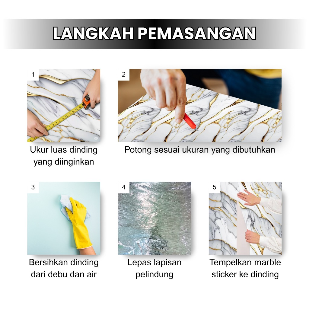 Wallpaper Marble Sticker Dinding 120x300cm, Marmer Stiker Roll Foam PVC Dekorasi Wallpanel Premium
