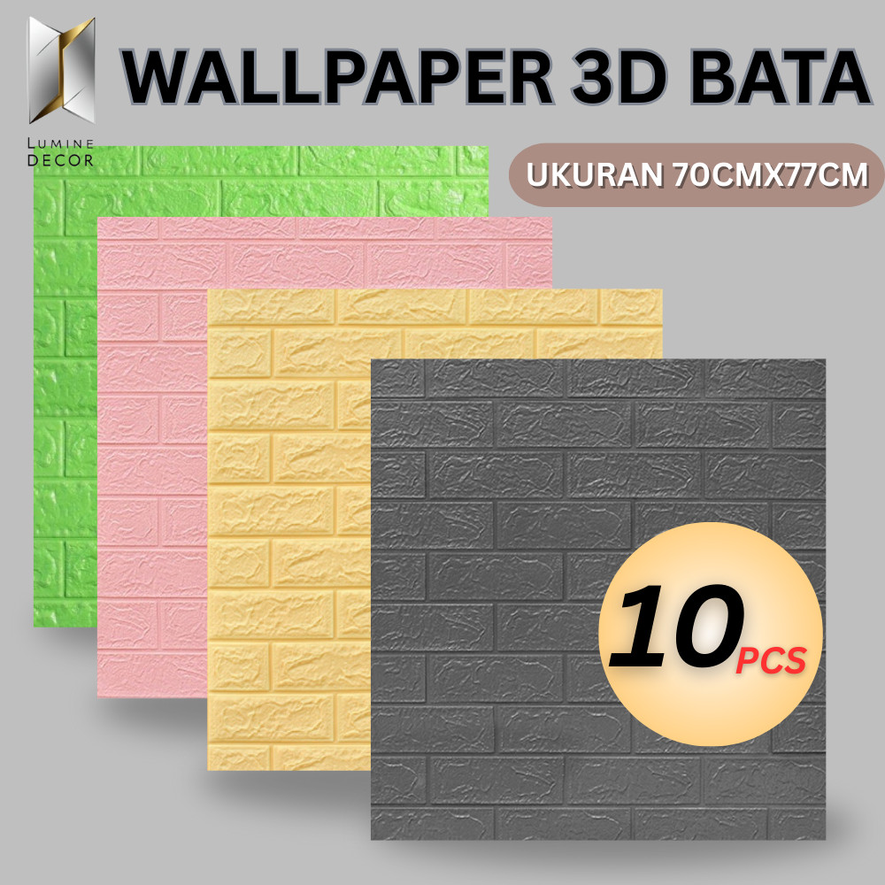 Lumine - PAKET 10Lembar Wallpaper Dinding Ukuran Besar 70x77cm 3D Foam Bata Classic Walpaper Sticker