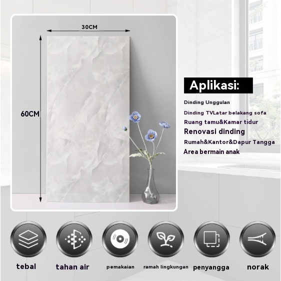 Wallpaper Dinding Stiker Vinyl Lantai Marble Granit Keramik Anti Air 30x60cm(10/20 lembar)- Kamar Mandi&Dapur