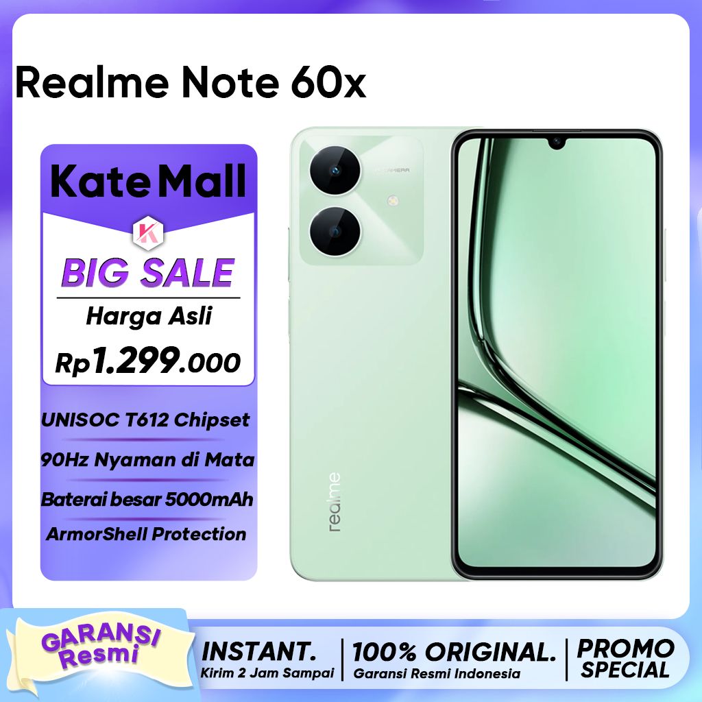 Realme Note 60x (4/64)(4/128) - Tahan Debu dan Percikan Air, 5000mAh Baterai Besar, Garansi Resmi