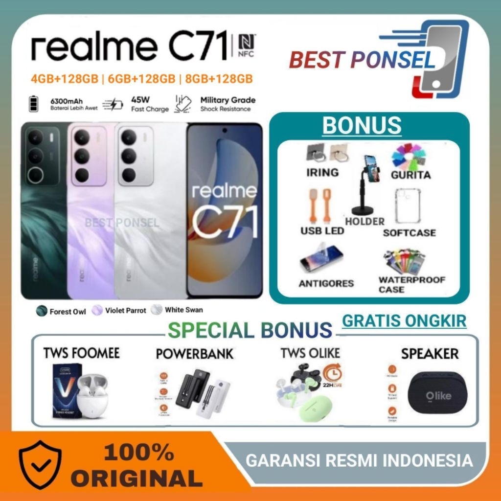 REALME C71 NFC RAM 4/128GB | 6/128GB | 8/128GB Battery 6300mAh - 45W Fast Charge GARANSI RESMI REALME INDONESIA