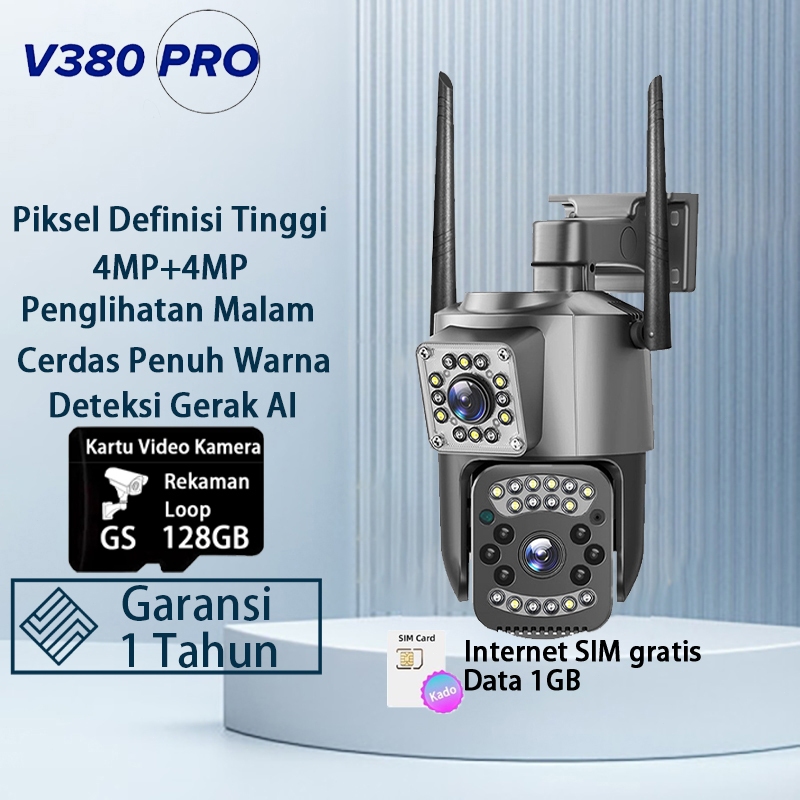 V380 Pro CCTV WiFi 4K 8MP 4G SIM Kamera PTZ IP66 Tahan Air Outdoor Lensa Ganda di Luar Ruangan