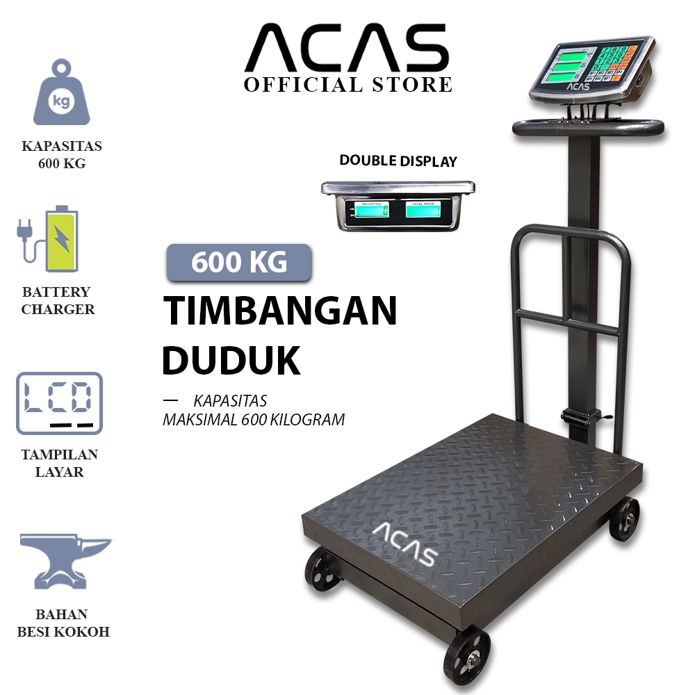 ACAS Tcs 600Kg / 4Kg Timbangan Duduk Digital Single Double Display Pagar Lipat Barang