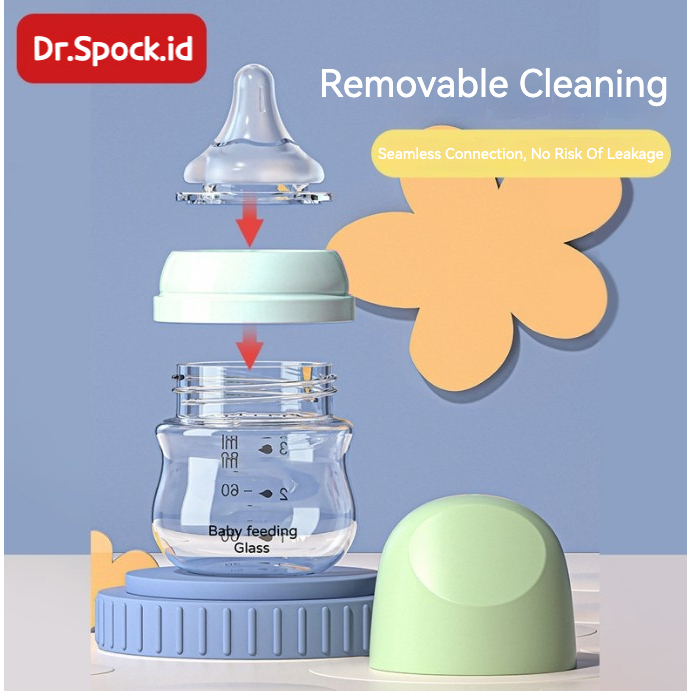 Dr.Spock Botol Bayi Newborn BPA Free / Dot Bayi Botol Susu Kaca 90ml/160ml Botol Susu Bayi Anti-Colic Anti-jatuh BP01
