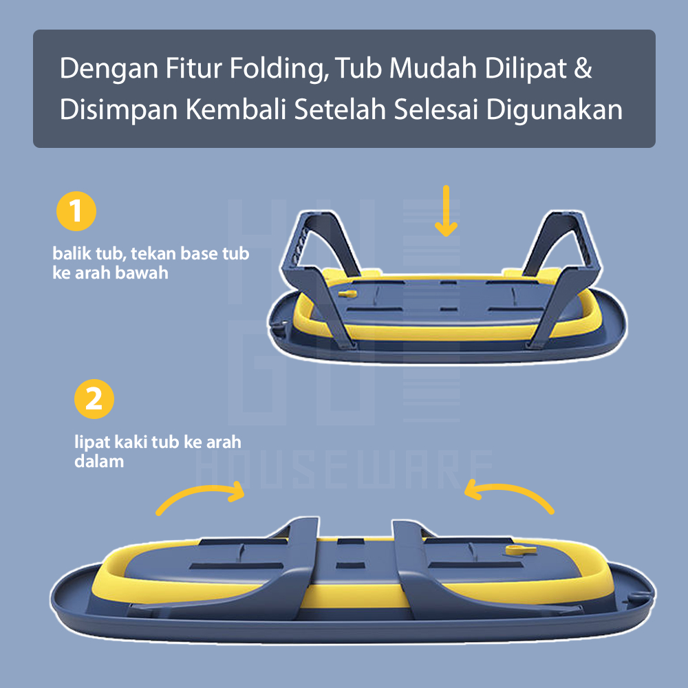 HUGO Bak Mandi Bayi Lipat / Foldable Baby Bath Tub / Tempat Mandi Bayi Portable dengan Bantal Mandi