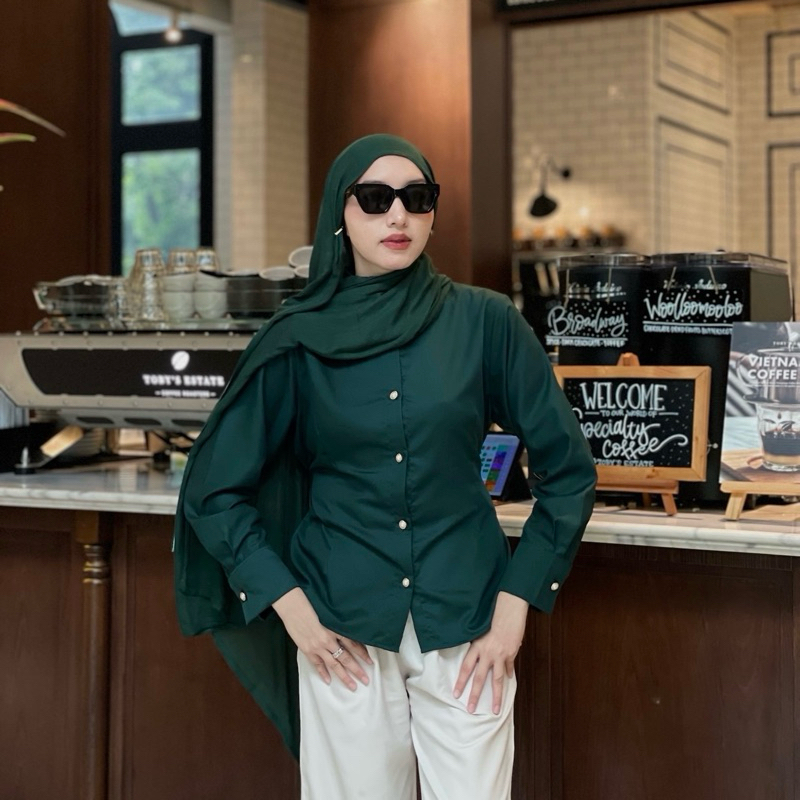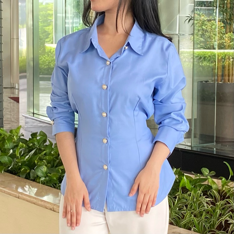 Sispo | Valora Top | Kemeja Atasan Wanita Brown Fitted Shirt Coklat Mahogany Baju Kantor Casual Kerja Cewek Polos Putih