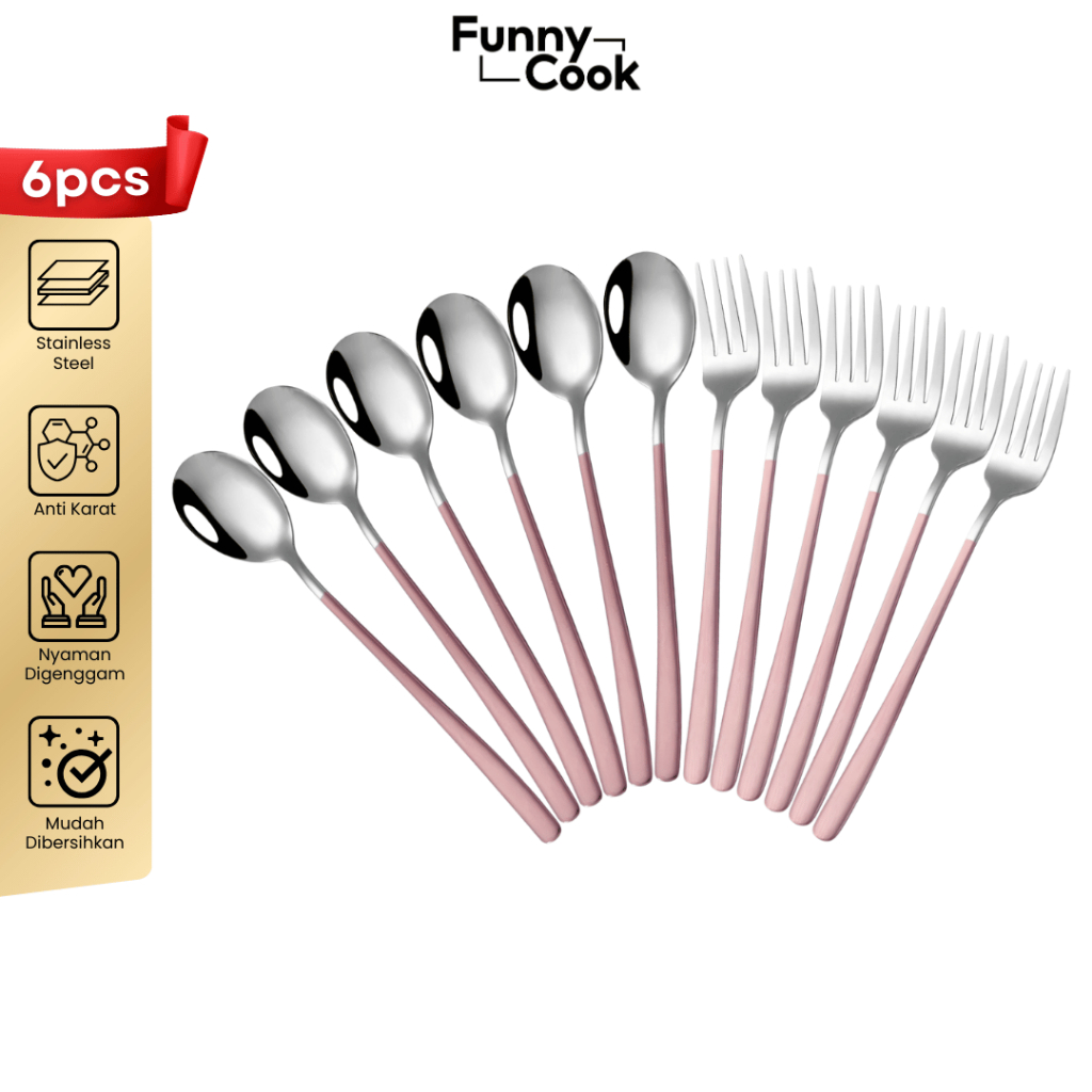 mall inline badgeFUNNYCOOK Sendok Garpu Set Stainless Sujeo Korean Alat Makan Korea Tebal Warna Warni