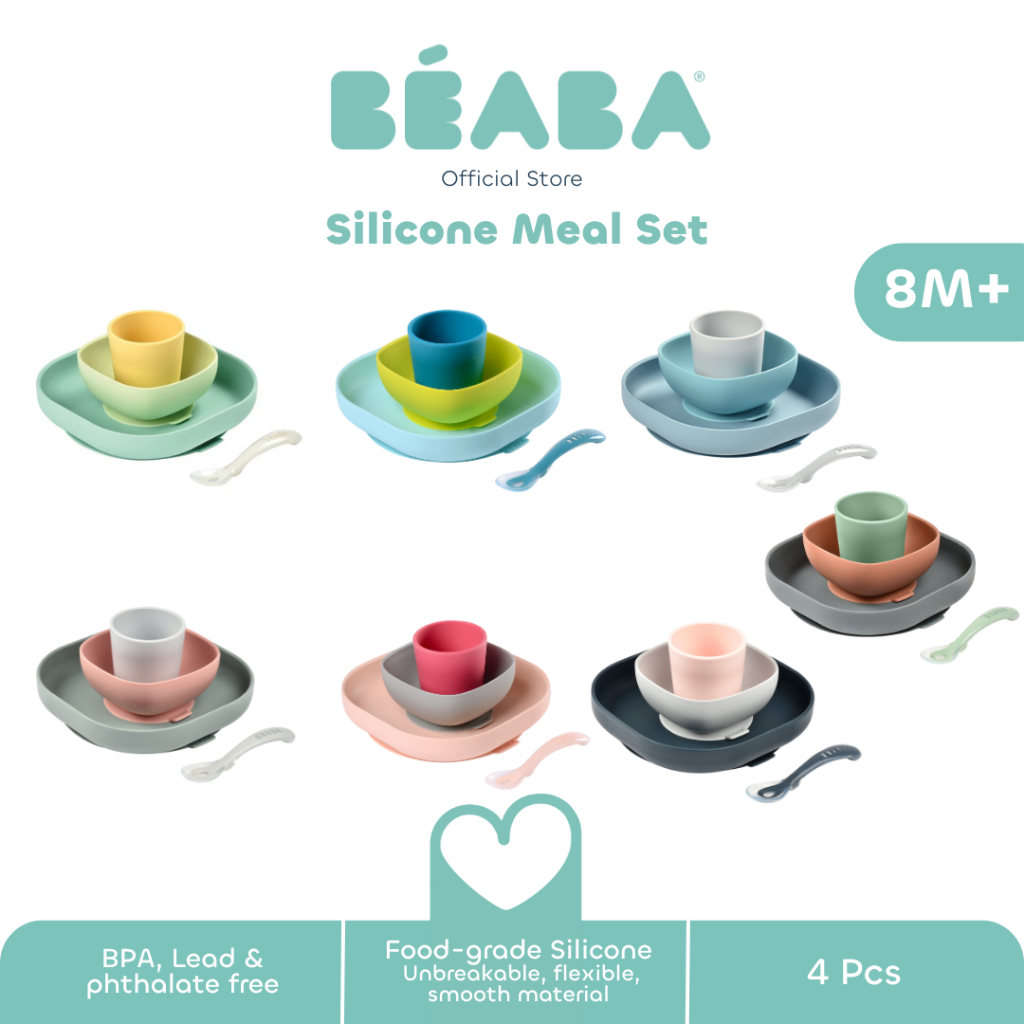 [NEW COLORS! Tebus Murah 10 Ribu] Beaba Baby Silicone Meal Set (4 Pcs) - Set Alat Makan Bayi Silicon (Piring/Plate, Mang