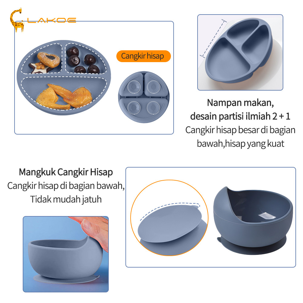 LAKOEOFFICIALMALL 6PCS/Set Peralatan Makan Bayi Alat Makan Bayi Silicon Set