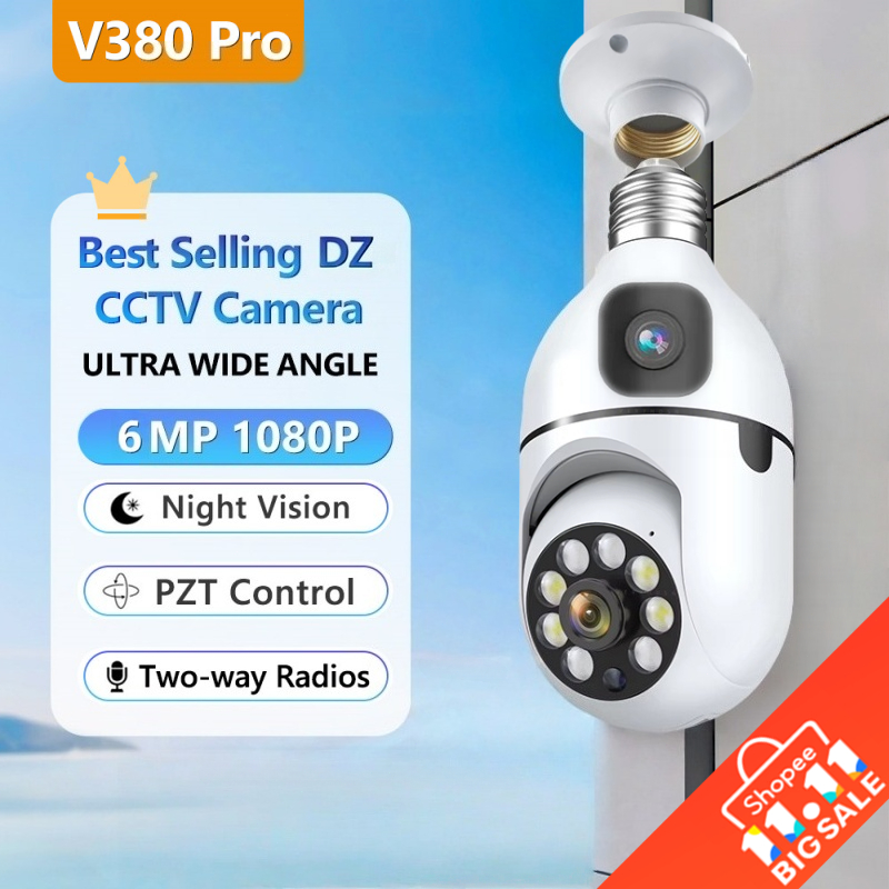 Dual Lensa CCTV V380PRO Kamera 1080P HD 2.4G/5G Wi-Fi BULB Alarm Deteksi Manusia AI Penglihatan Malam Inframerah