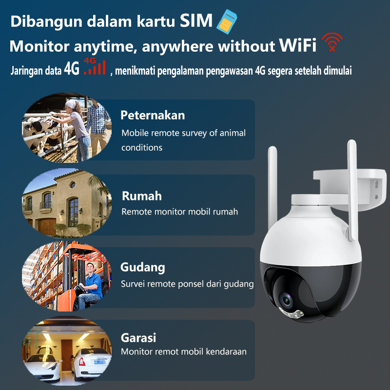 CCTV V380 Pro IP Camera Outdoor Koneksi Sim card 4G,cctv tanpa wifi bisa sambung hp Waterproof