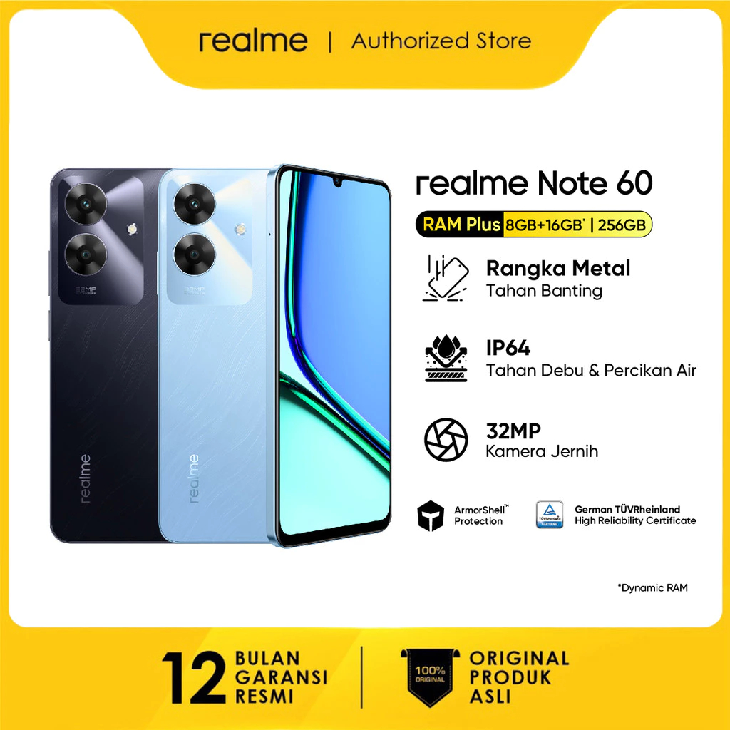 realme note 60 8GB+256GB ArmorShellTM Protection | TÜV Rheinland | 32MP Camera| 48- month Fluency | IP64 Dust & Water Resistance
