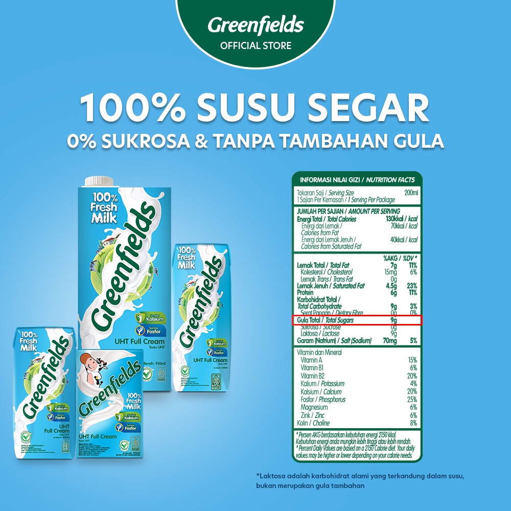 [LEBIH HEMAT] Susu Greenfields UHT Full Cream 250ml x 1 Karton