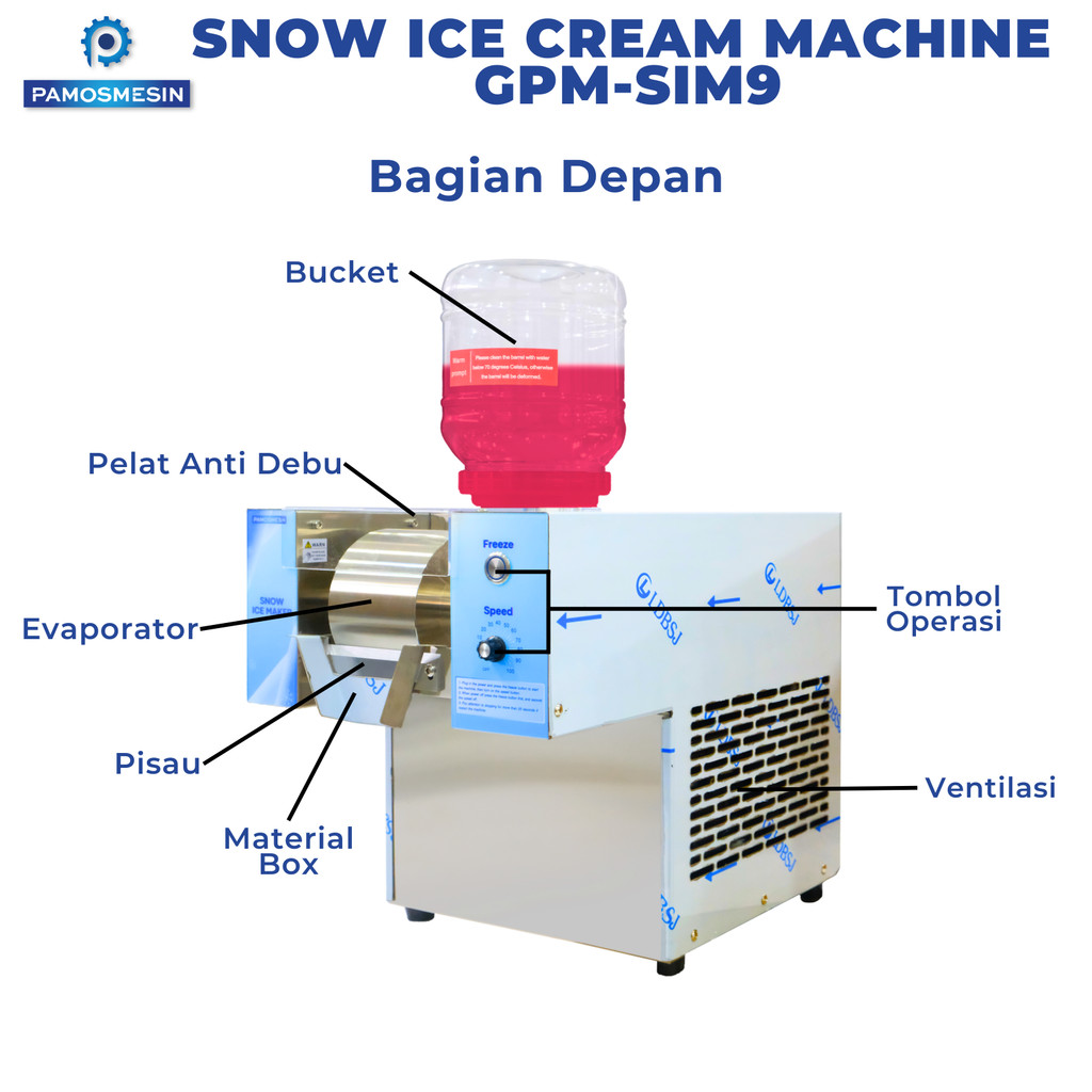 Pamosroom Snow Ice Machine Bingsu Mesin Es Krim Korea Es Serut Ice Cream Bingsu Mesin Ice Bingso 360 Watt SIM 9