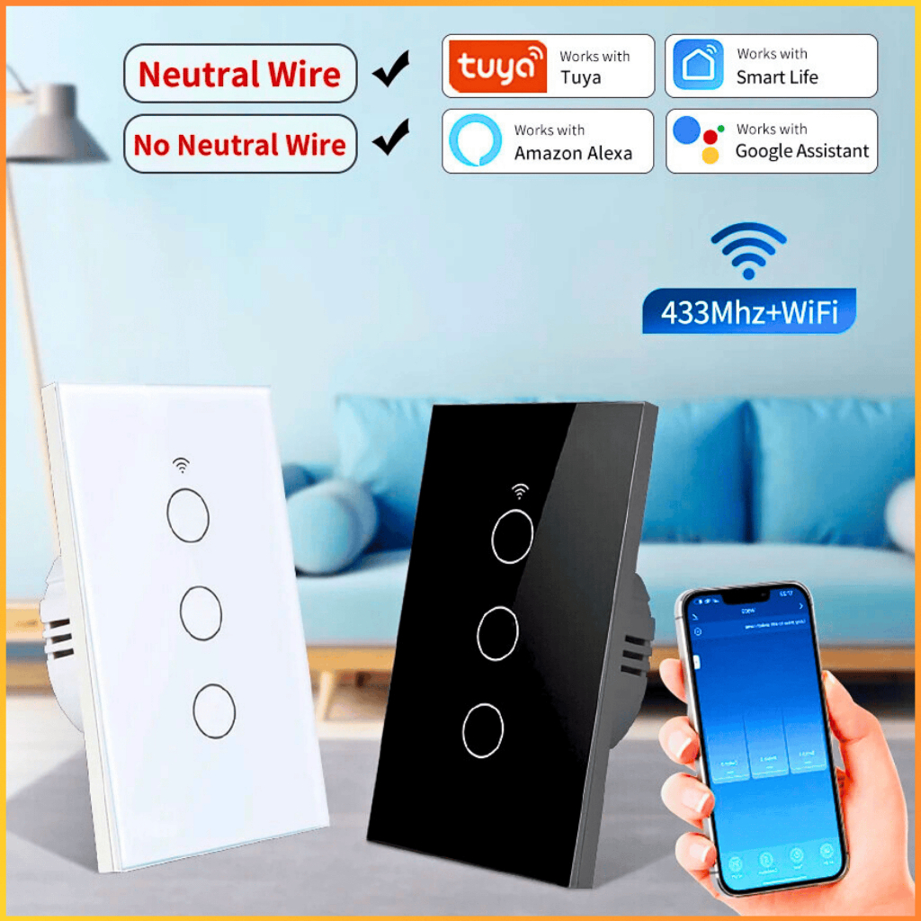 TaffHOME Saklar Lampu Wireless WiFi Smart Jarak Jauh Remote RF 433 MHz Tuya Alexa Touch Control