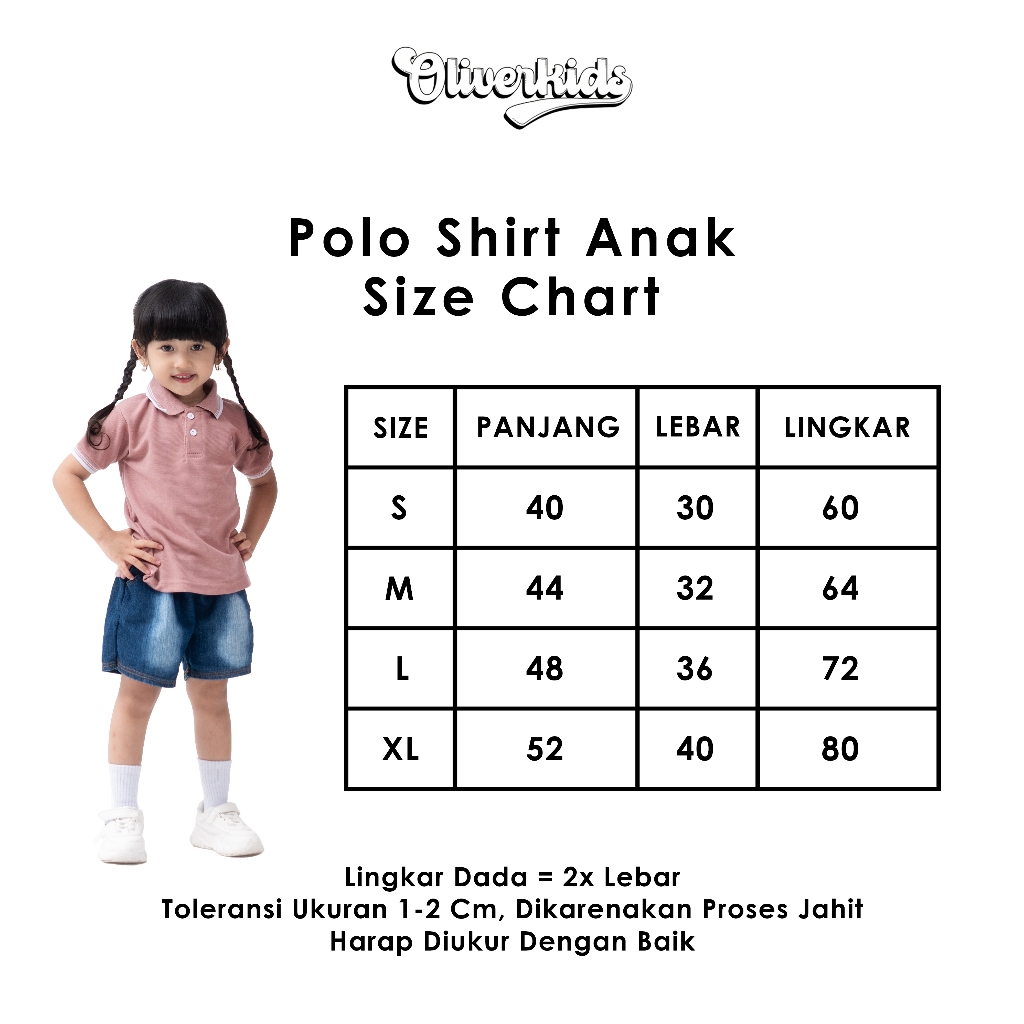 OLIVERKIDS - Baju Polo Shirt Anak Perempuan Usia 1-8 Tahun Kaos Kerah Kemeja Unisex Cewe Cowok