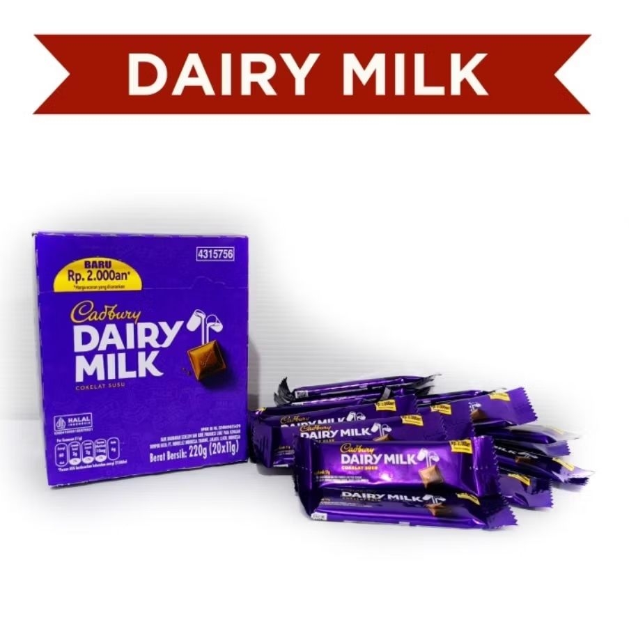 Cadbury Dairy Milk 11 Gram Pack 20 Pcs – Coklat Susu Enak & Lembut Promo Spesial