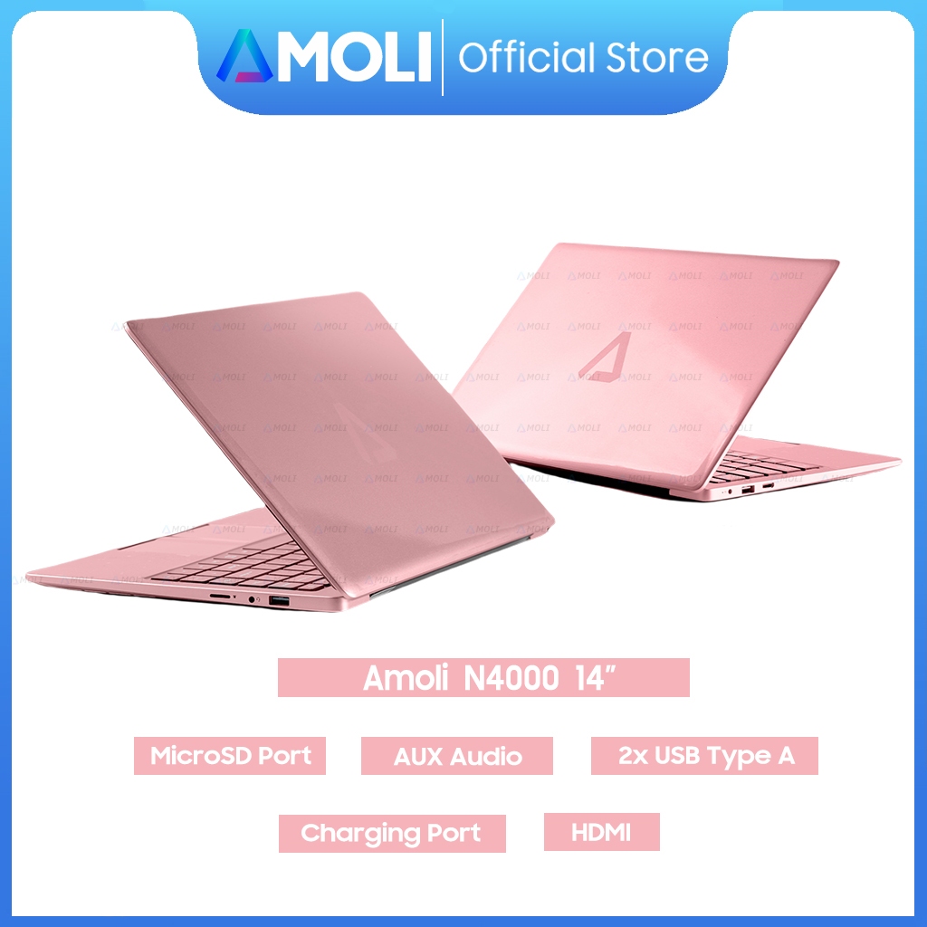 AMOLI Laptop Pink / Hitam/ Silver RAM 8GB + SSD 256GB 15.6"IPS Intel N4000 Instalasi Windows 11 + Office La