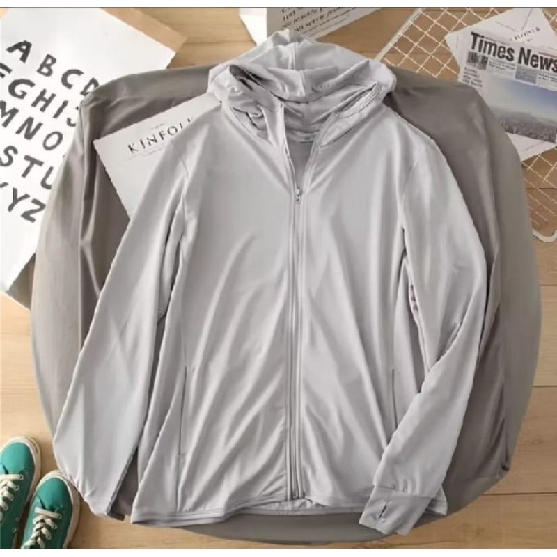 Jaket olahraga anti UV Wanita Dan Pria Lengan Panjang Hoodei UV Protection (UPF50+) Jaket Mesh keren unisex
