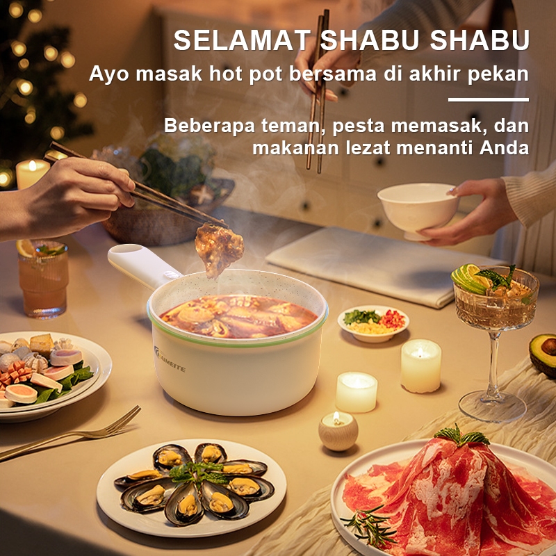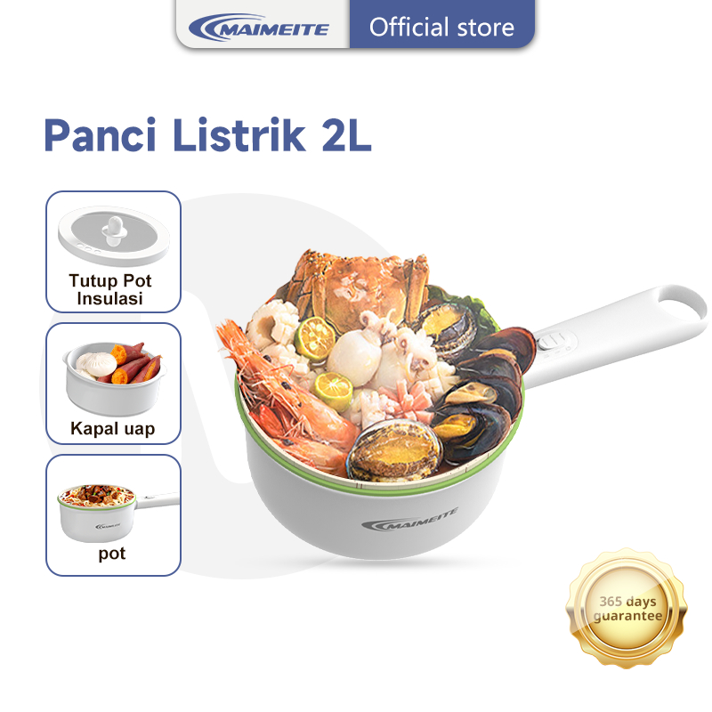 MAIMEITE Panci Listrik 2L serbaguna menggoreng Keramik Free Steamer Pelajar/Asrama/Perjalanan Bisnis