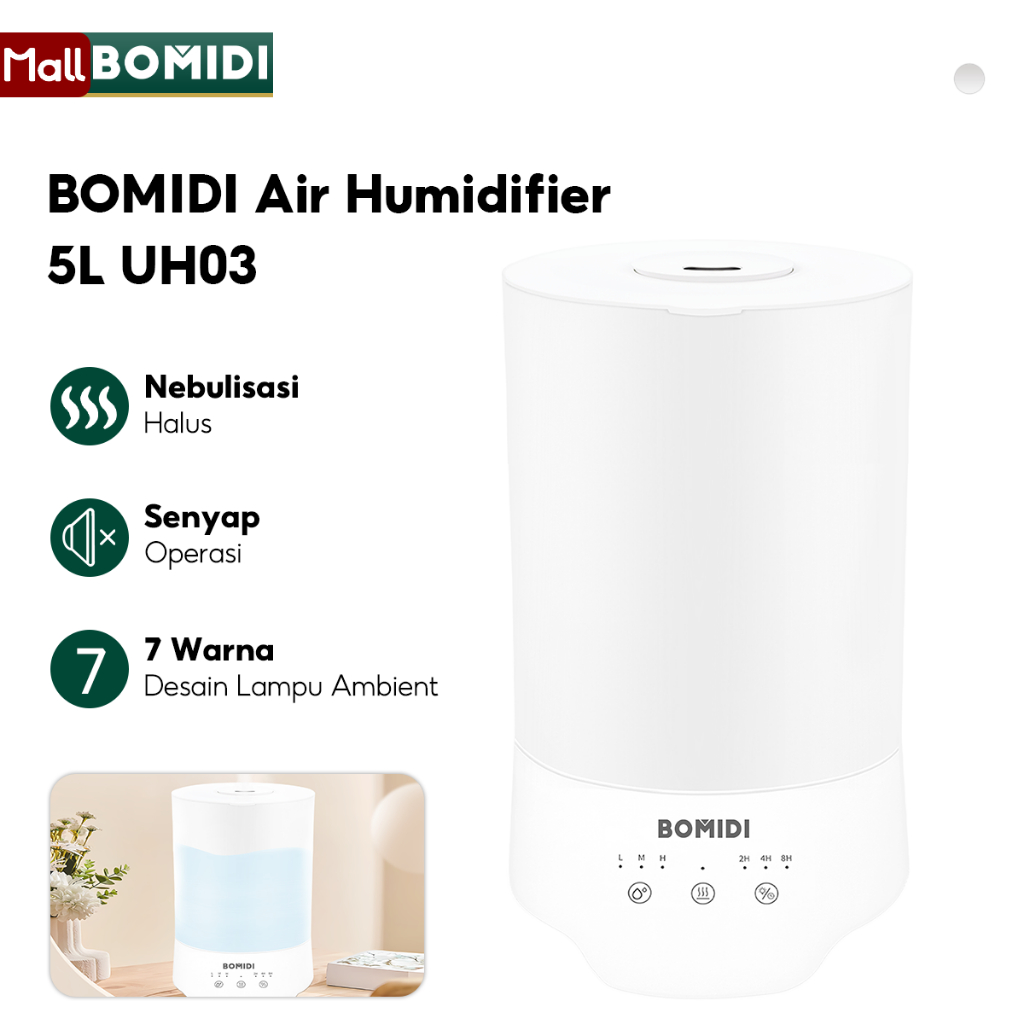 BOMIDI 5L Air Humidifier UH03 Pelembab Udara Berkapasitas Besar 7 Cahaya Sekitar With Timing & Touch