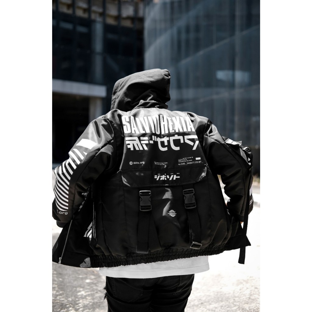 Jaket Bomber Pria Hoodie Cyborg Original SALVIOHEXIA | Jaket Motor Tebal Windproof | Jaket Bomber Hoodie Backpocket | Jaket Hoodie Cyberfunk