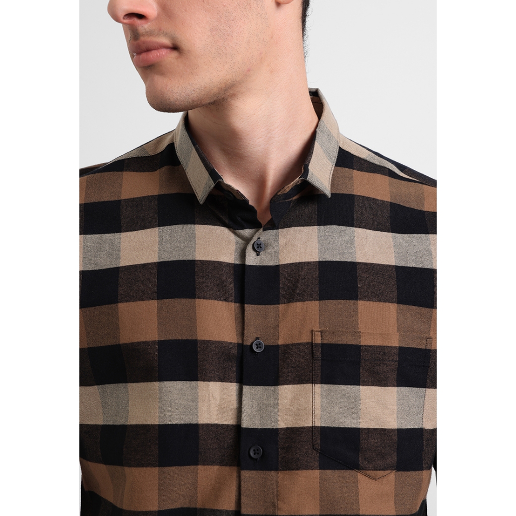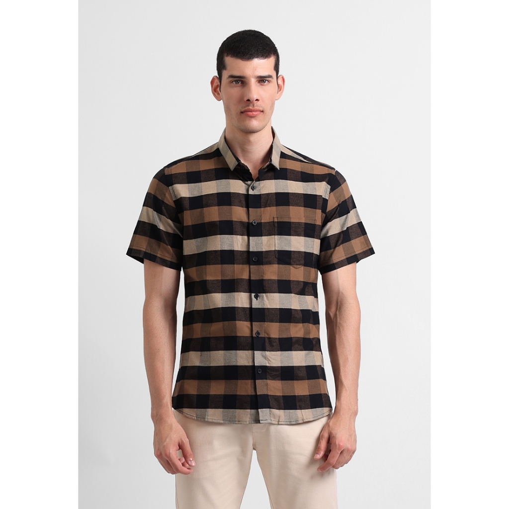 Manzone Kemeja Lengan Pendek Pria Slim Fit Rodrick 2 - Brown