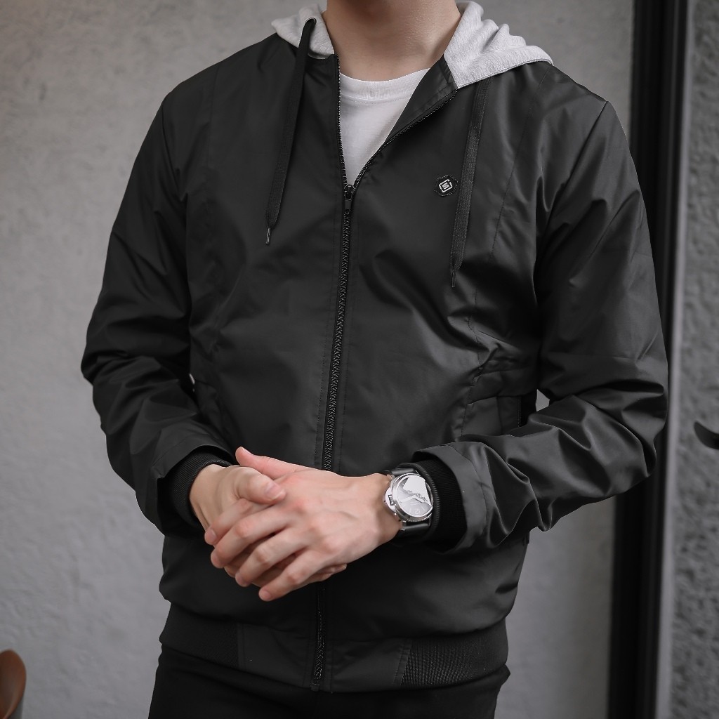 NIKOLAI Jaket Pria Outdoor Anti Air Warna Black
