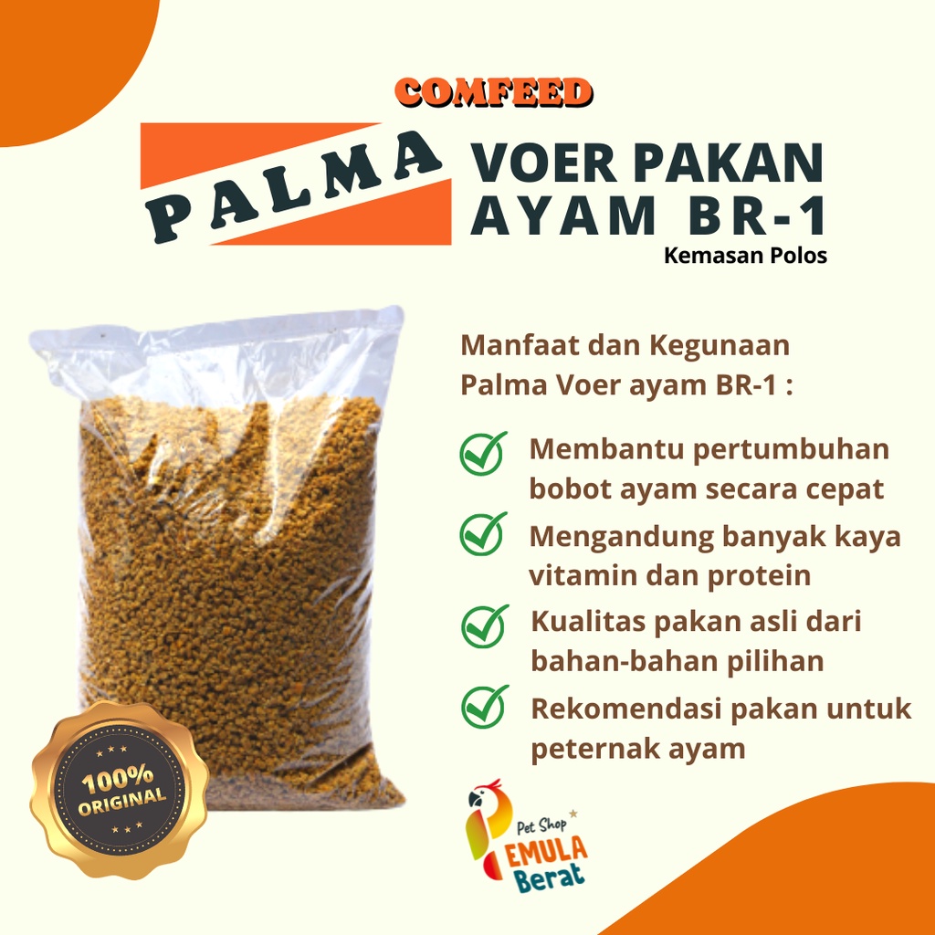 PAKAN AYAM BR 1 PALMA COMFEED 1KG VOER PERTUMBUHAN PALMA COMFEED PUR AYAM BR 1 POR AYAM BR 1 VOER AYAM BR SATU KILO PALMA COMFED