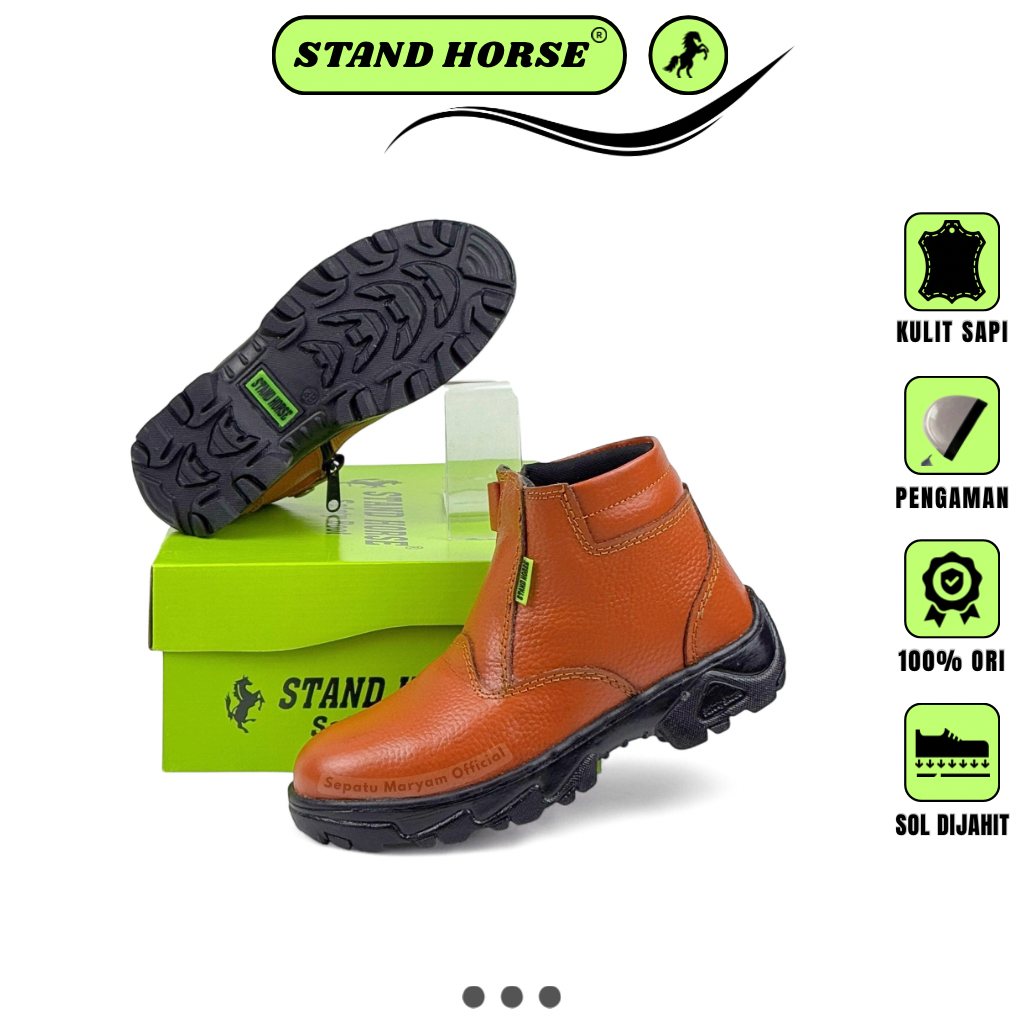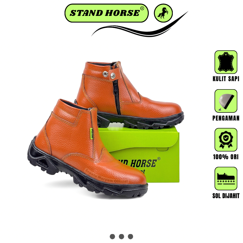Sepatu Safety Pria Resleting 506 STAND HORSE - Kulit Asli Ujung Besi Non Slip Unisex