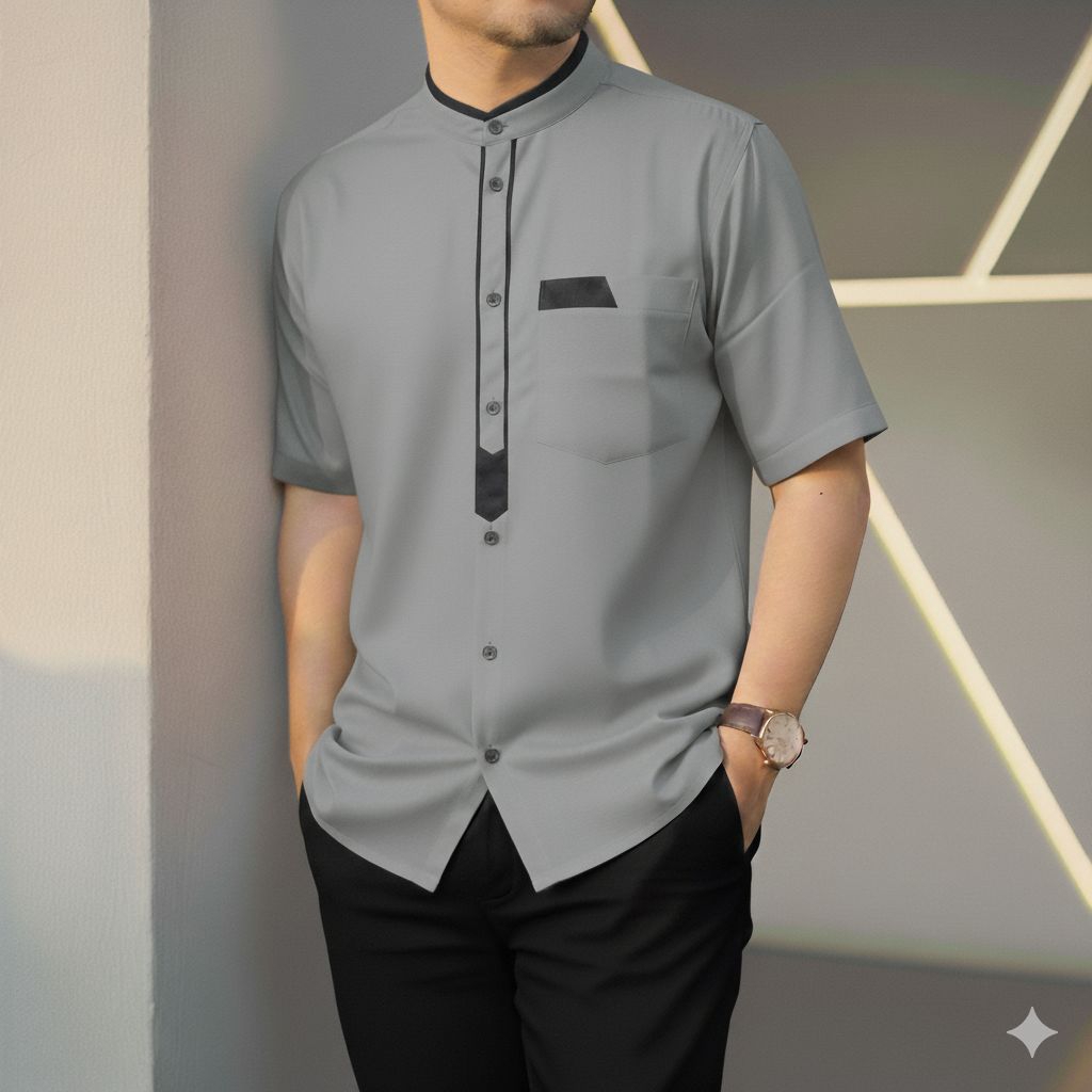 Baju kemeja koko pria Lengan pendek dewasa premium murah ori Kemko Dewasa Motif Polos Katun Toyobo Abu Hitam Putih Coksu
