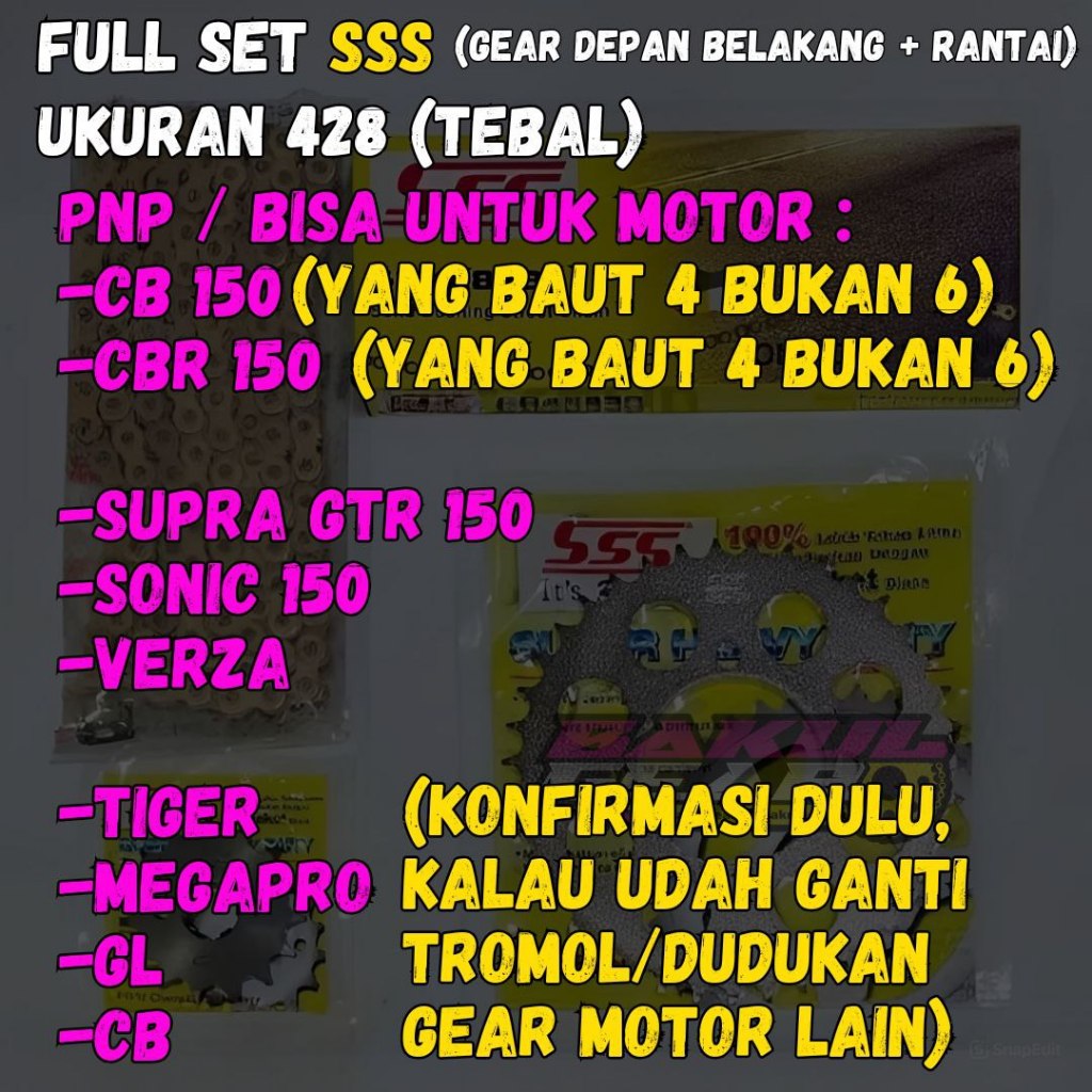 Gear Set SSS CBR150r CB150r Tiger CB GL Verza Sonic 150r Supra GTR Megapro CBR 150 Rantai 428 KH1