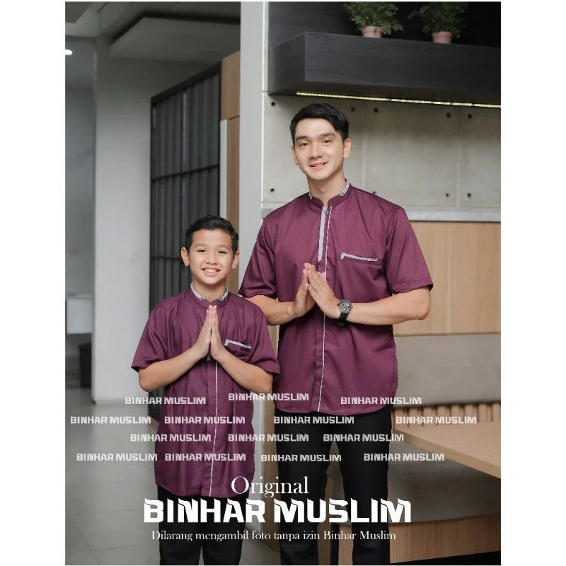 Baju Koko dewasa premium pendek ori murah terbaru Couple Ayah Anak Laki Laki warna burgundy Lengan Pendek Terbaru 2025