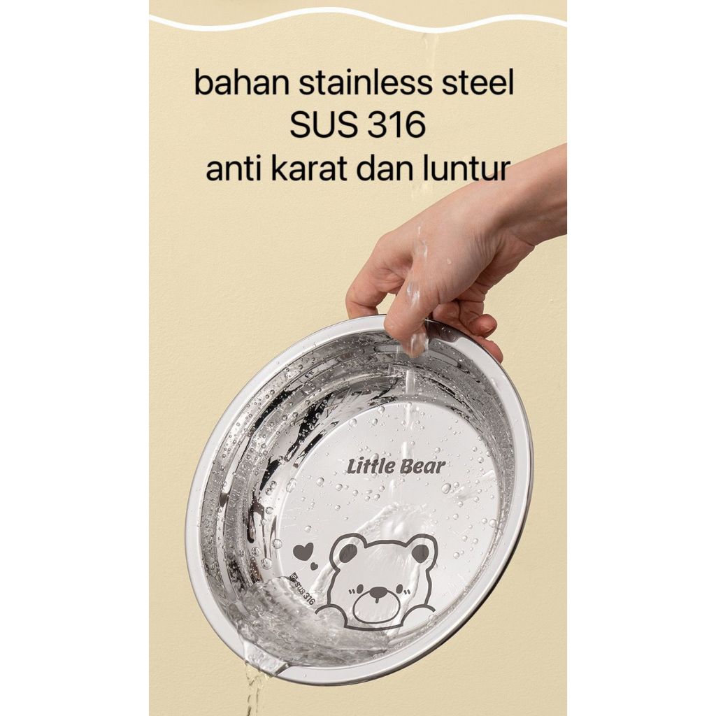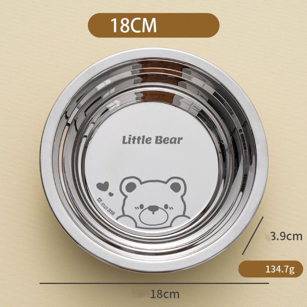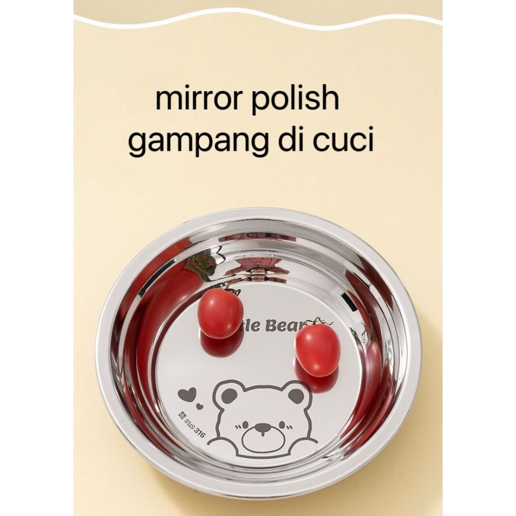 ZENI COLLECTION Bakindo Piring Makan Anak Stainless Steel 316 Food Grade Bpa Free Piring Lucu Kartun Mirror Polish Piring Little Bear Piring Little Dino