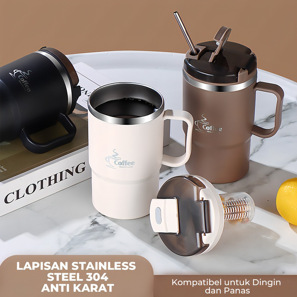 ZENI COLLECTION Heefn Tumbler Gelas Kopi Tahan Panas dan Dingin 600ML