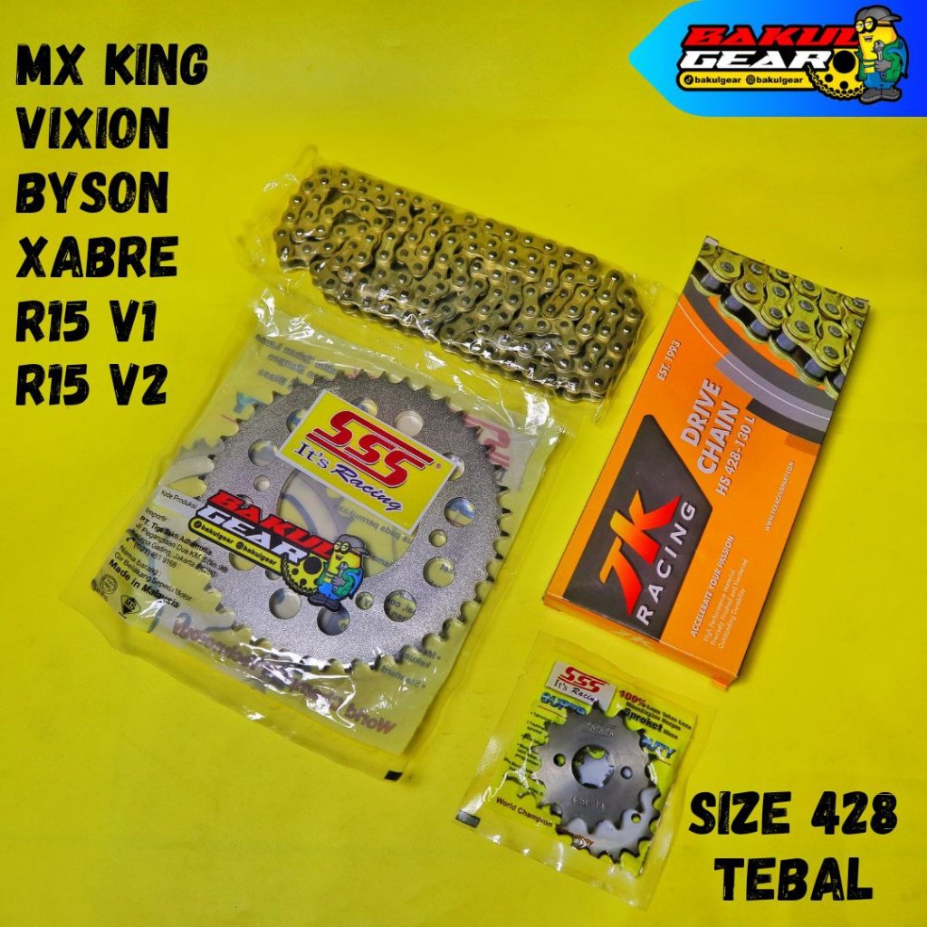 Gear set SSS 428 VIXION / MX King / BYSON / NVL / NVA Rantai TK HS Gold Original