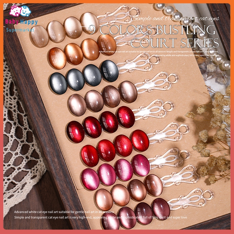 FHT 15ml 9 Warna Set Cat Kuku Gel Bubuk Berlian Kristal Seni Kuku Mata Kucing Kit Kuku untuk Manikur Gel Salon dan Seni