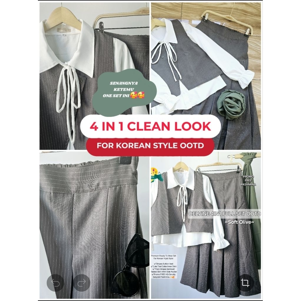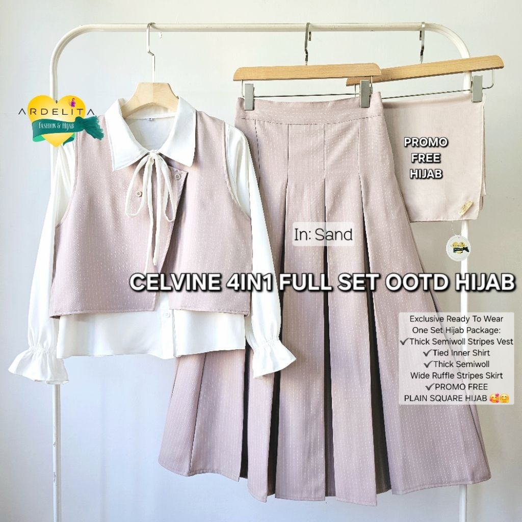 Ardelita Fashion Hijab - PROMO FREE HIJAB - Celvine One Set 4in1 OOTD Hijab Korean Style - Baju Setelan Rok Remaja Dewasa