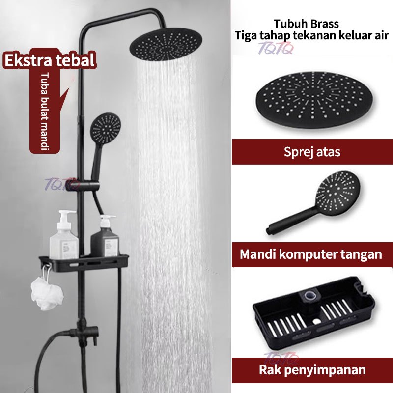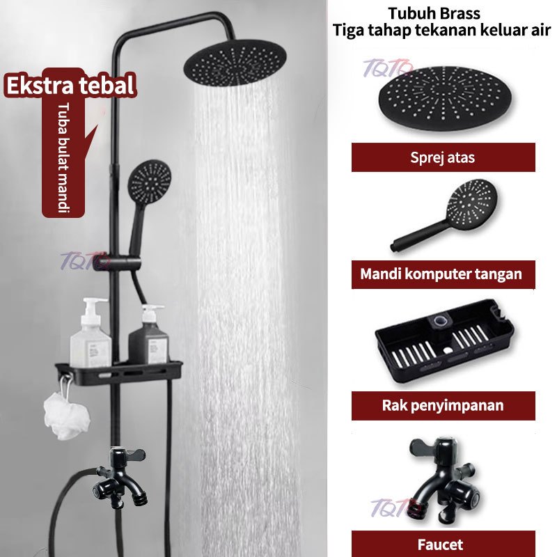 TQTQ Paket Shower Kamar Mandi Bulat Stainless Wall Mounted Hitam Set Lengkap Murah