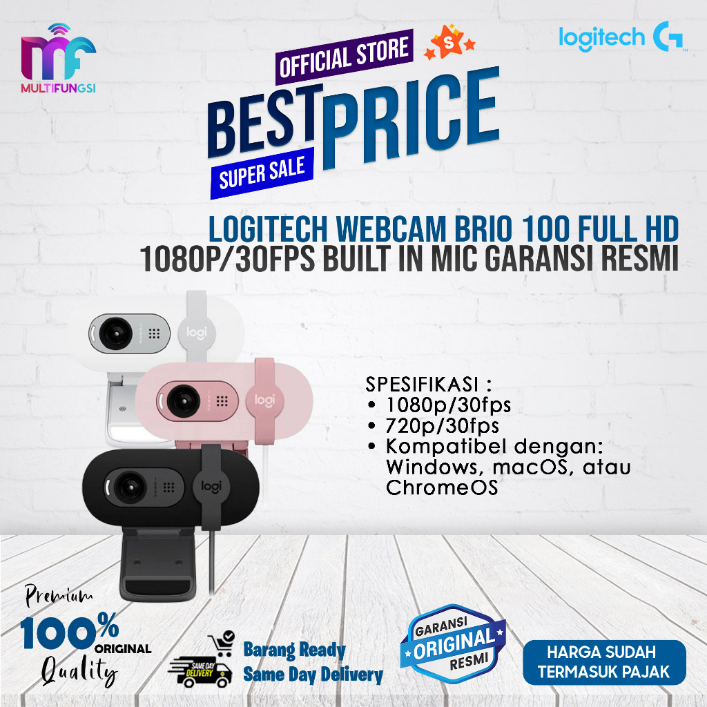 Logitech Webcam Brio 100 Full HD 1080p/30fps Built in Mic Garansi Resmi