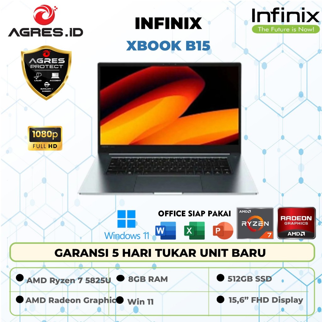 Laptop Infinix Xbook B15 Ryzen 7 5825 Ram 8GB Ssd 512GB Win 11 15.6" Fhd Ips 100sRGB