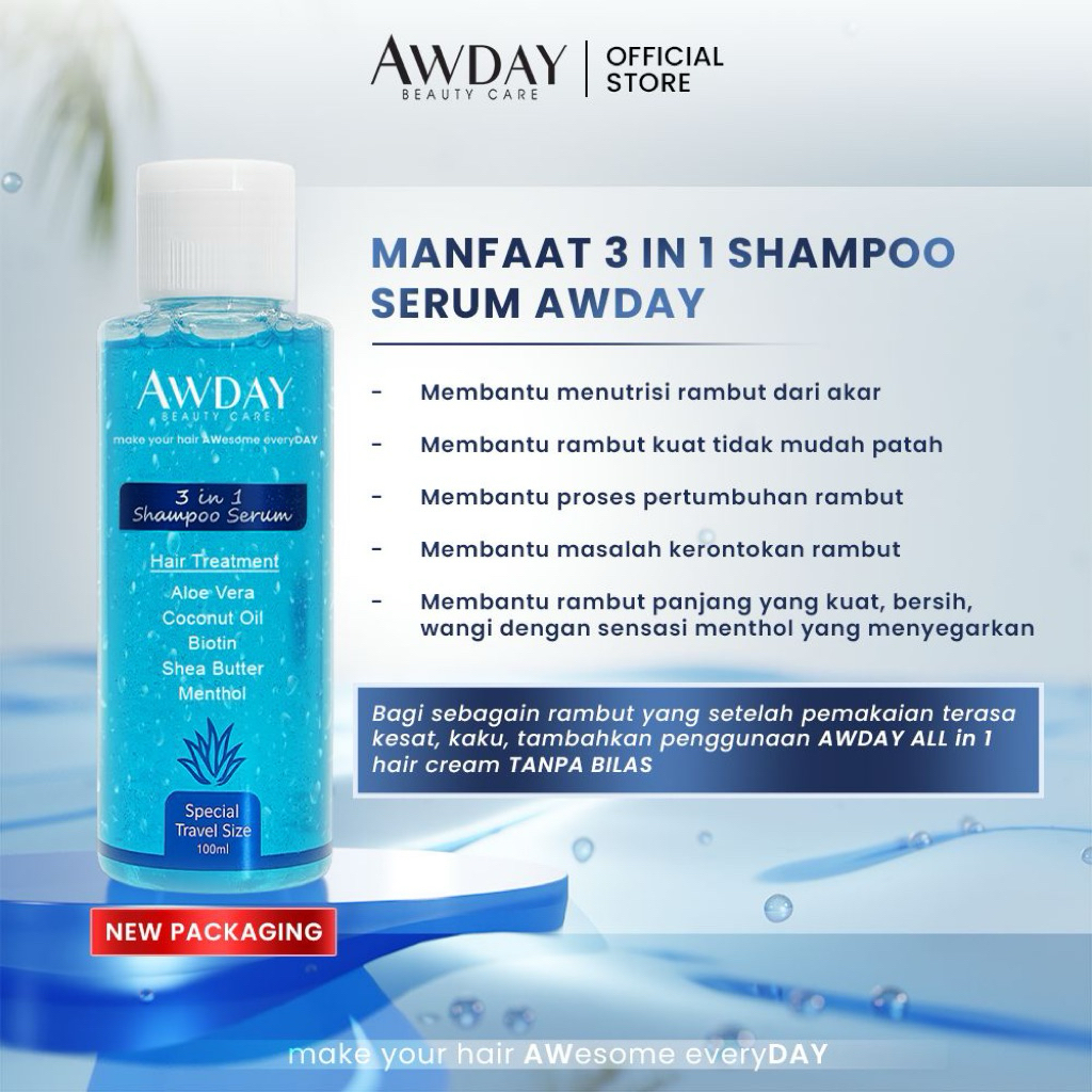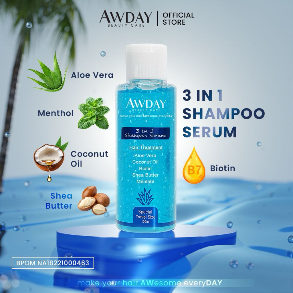 [Star] Awday Travel Size 100ml 3in1 Shampoo Serum Hair Treatment Original 100% BPOM HALAL