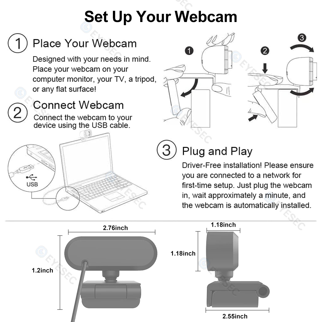 EYESEC Webcam 1080P Laptop USB Kamera PC With Mic Camera Webcast Live Zoom Google Meeting Camera Broadcast Video