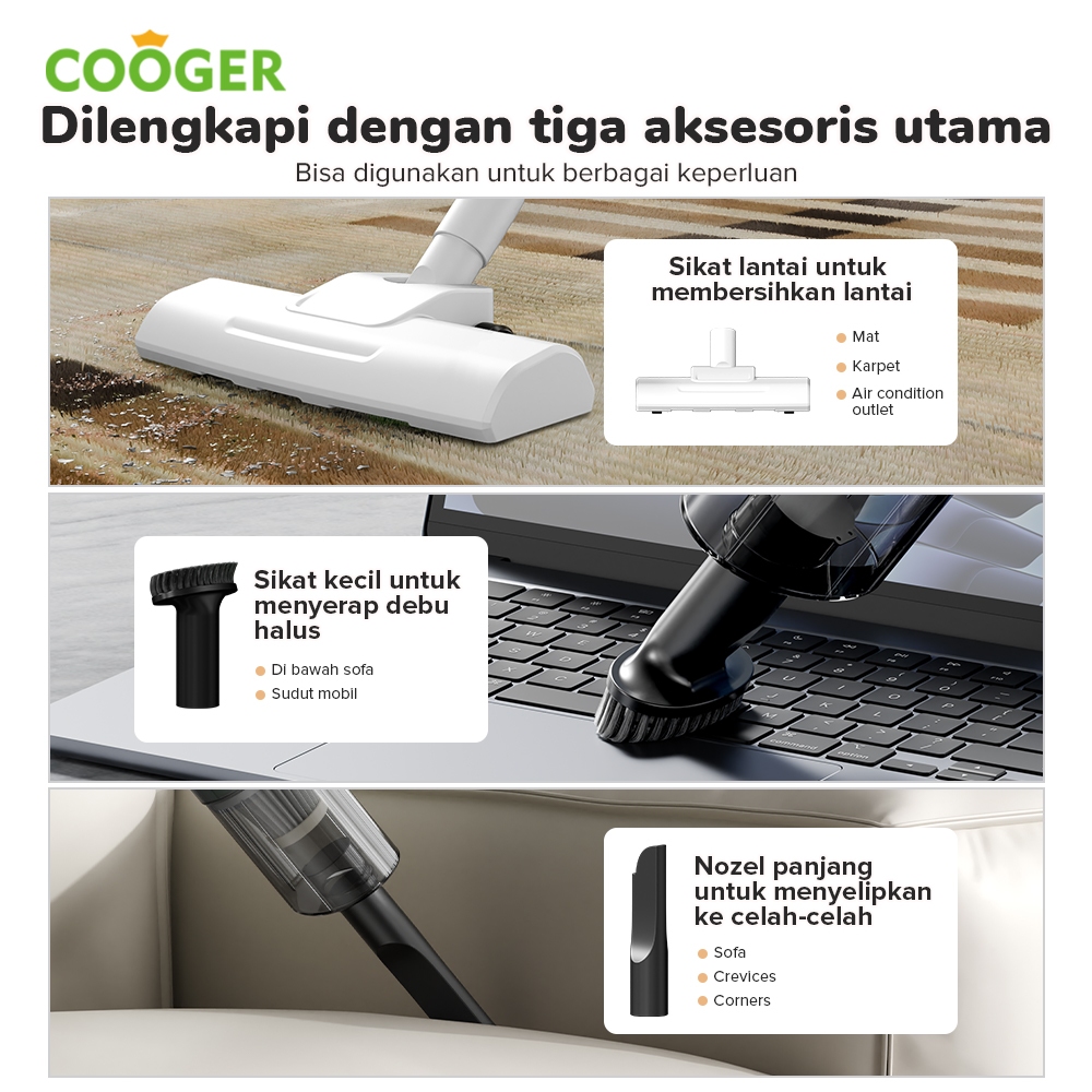 HP 0 DP COOGER Vacum Cleaner 5IN1 Vacuum Lantai Penyedot Debu 5IN1 Dengan Gagang Panjang Hijau Alat Penyedot Debu Serbaguna Penyedot Debu Lantai