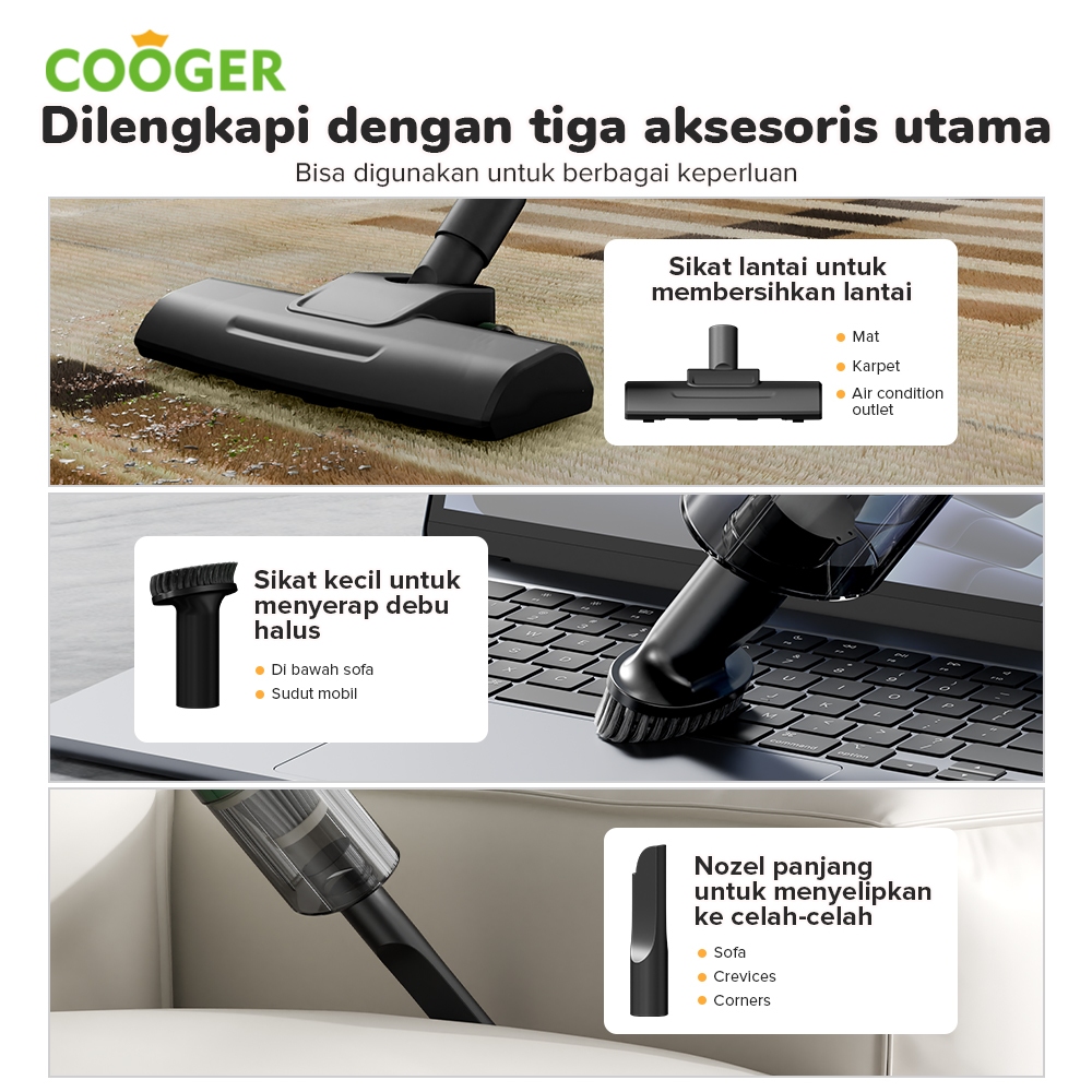 HP 0 DP COOGER 5IN1 Vacuum Cleaner Serbaguna dengan Daya Hisap Kuat Penyedot Debu Untuk Lantai Sofa Karpet dan Sudut Rumah Praktis Dengan Gagang Warna Elegan