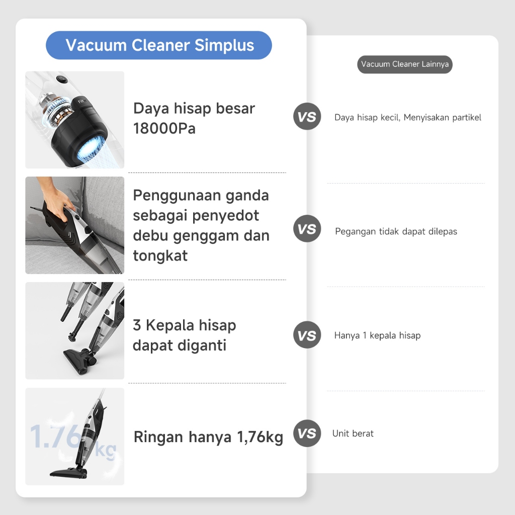 HP 0 DP Simplus Portable Handheld 2 in 1 Silent Vacuum Cleaner home penyedot debu Daya Hisap Besar 18000pa